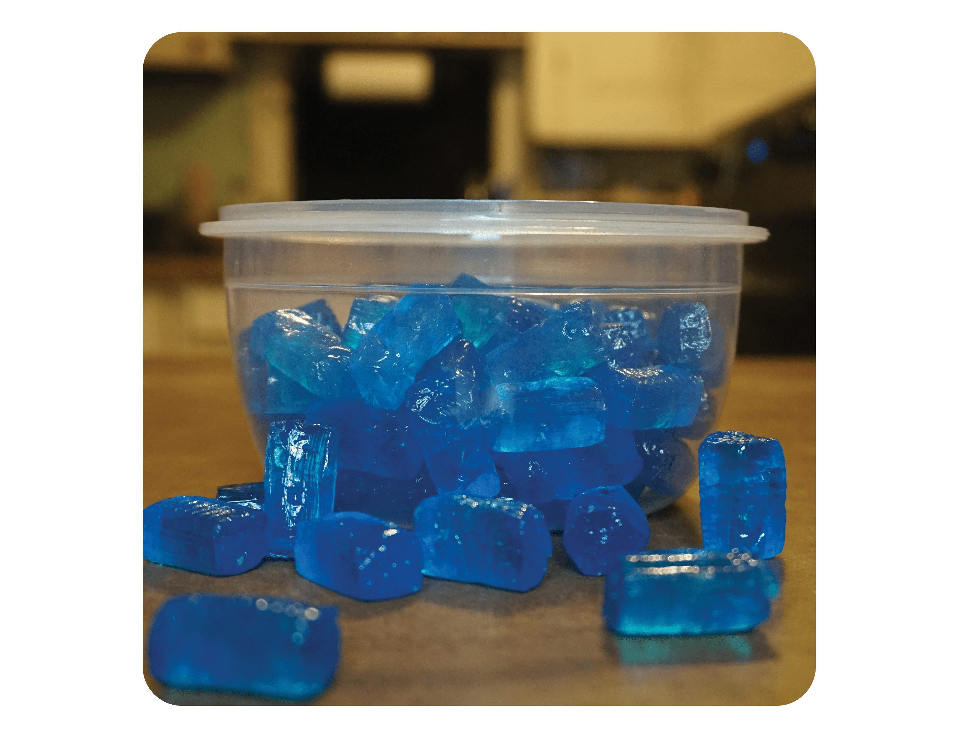 The blue raspberry variant of a small tart candy.